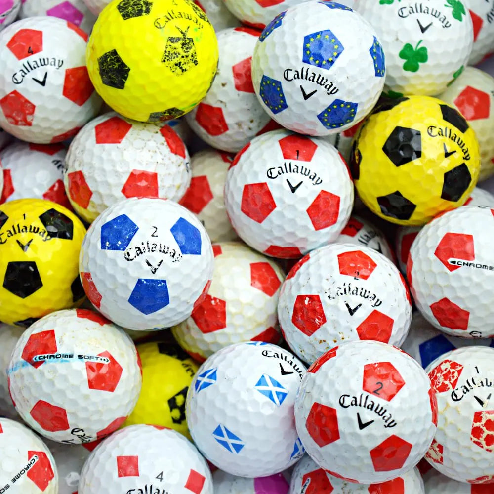 Callaway Chrome Soft Truvis golf balls deliver tour-level speed, spin, and control with a Hyper Elastic SoftFast™ Core and Tour Aero design. The Truvis pattern enhances visibility and focus on every shot. These are lake balls, offering exceptional performance at a fraction of the price of new golf balls.