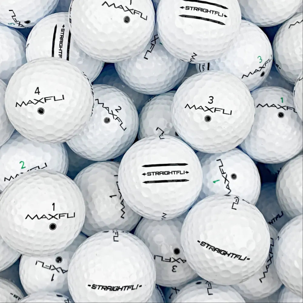 Maxfli StraightFli golf balls are designed for improved accuracy, flying 20% straighter than previous models. Featuring a unique dimple pattern and a soft ionomer cover, they provide control and a great feel. These are lake balls, offering exceptional performance at a fraction of the price of new golf balls.
